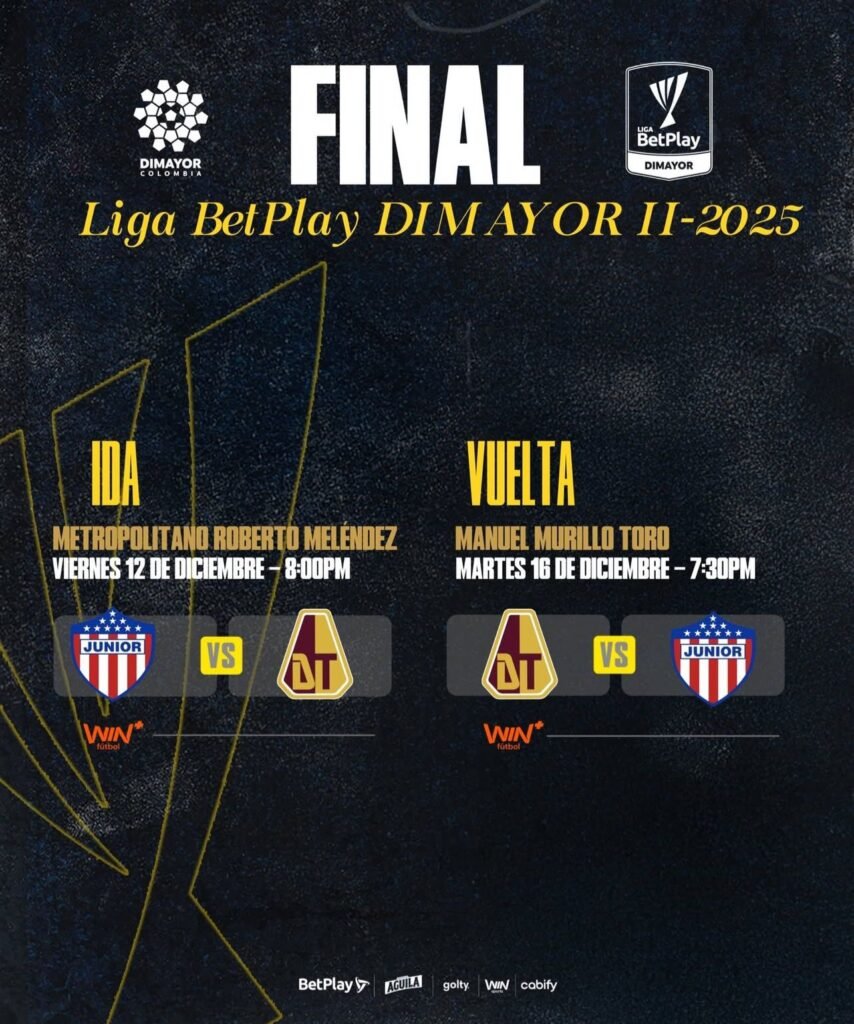 La Dimayor confirmó oficialmente los días y horarios de la gran final de la Liga BetPlay II-2025, donde Junior de Barranquilla y Deportes Tolima se verán las caras en una serie que promete alta intensidad, estadios llenos y un título muy disputado.